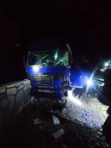 ساعاتی قبل یک دستگاه تریلی کشنده کمر شکن در جاده اصلی شمشک پایینتر از مجتمع سییرا با تیر