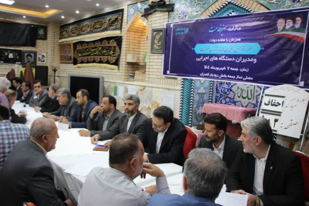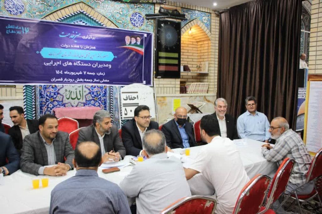 براساس برنامه ریزی صورت گرفته، به مناسبت فرارسیدن هفته دولت، میز خدمت روسای دستگاههای اجرایی رودبارقصران در مصلای نماز جمعه برگزار شد.