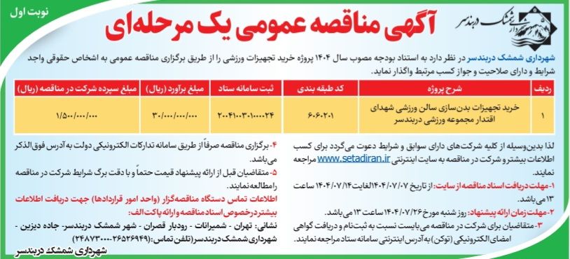 آگهی مناقصه عمومی یک مرحله ای (نوبت اول)